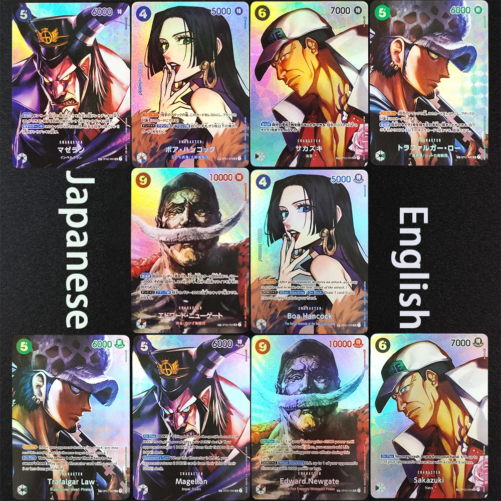DIY One Piece OPCG Japanese/English OP04 Kingdoms of Intrigue Boa Hancock Newgate Law Magellan Sakazuki Anime Flash Card Toy $4.46