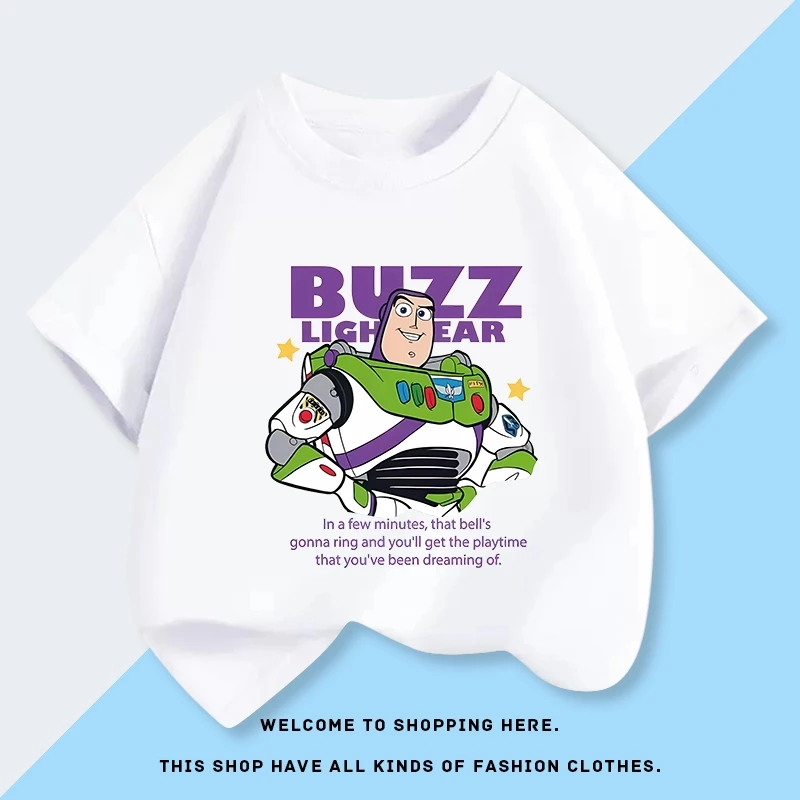 Toy Story Buzz Lightyear Trendy Boys' T-shirt Short-sleeved Shirt New Summer Boys' Pure Cotton Top Children's Wear $5.42