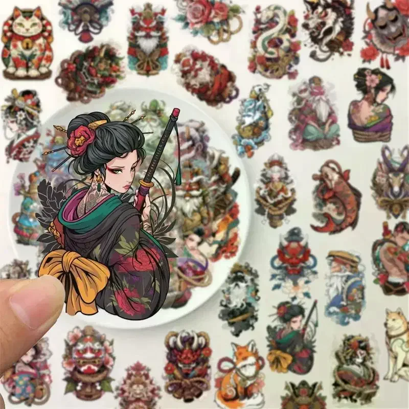 50PCS Transparent Japanese Tattoo Art Stickers Creative Girls Tattoo Retro Sticker For Scrapbooking Luggage Phone Guitar DIY Toy $3.96