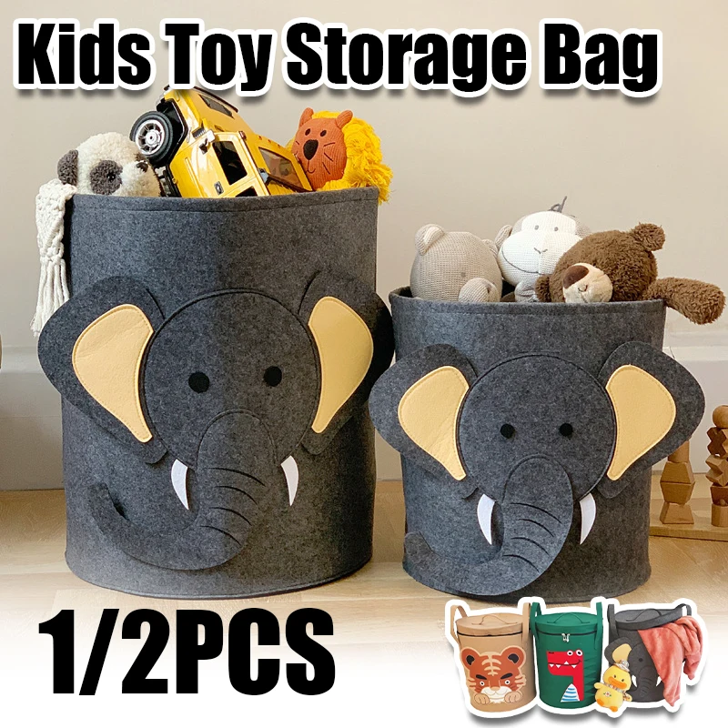 Cartoon Design Kids Toy Storage Bag with Lid Dustproof Fabric Clothes Organizer Bin for Home Nursery Room $10.06