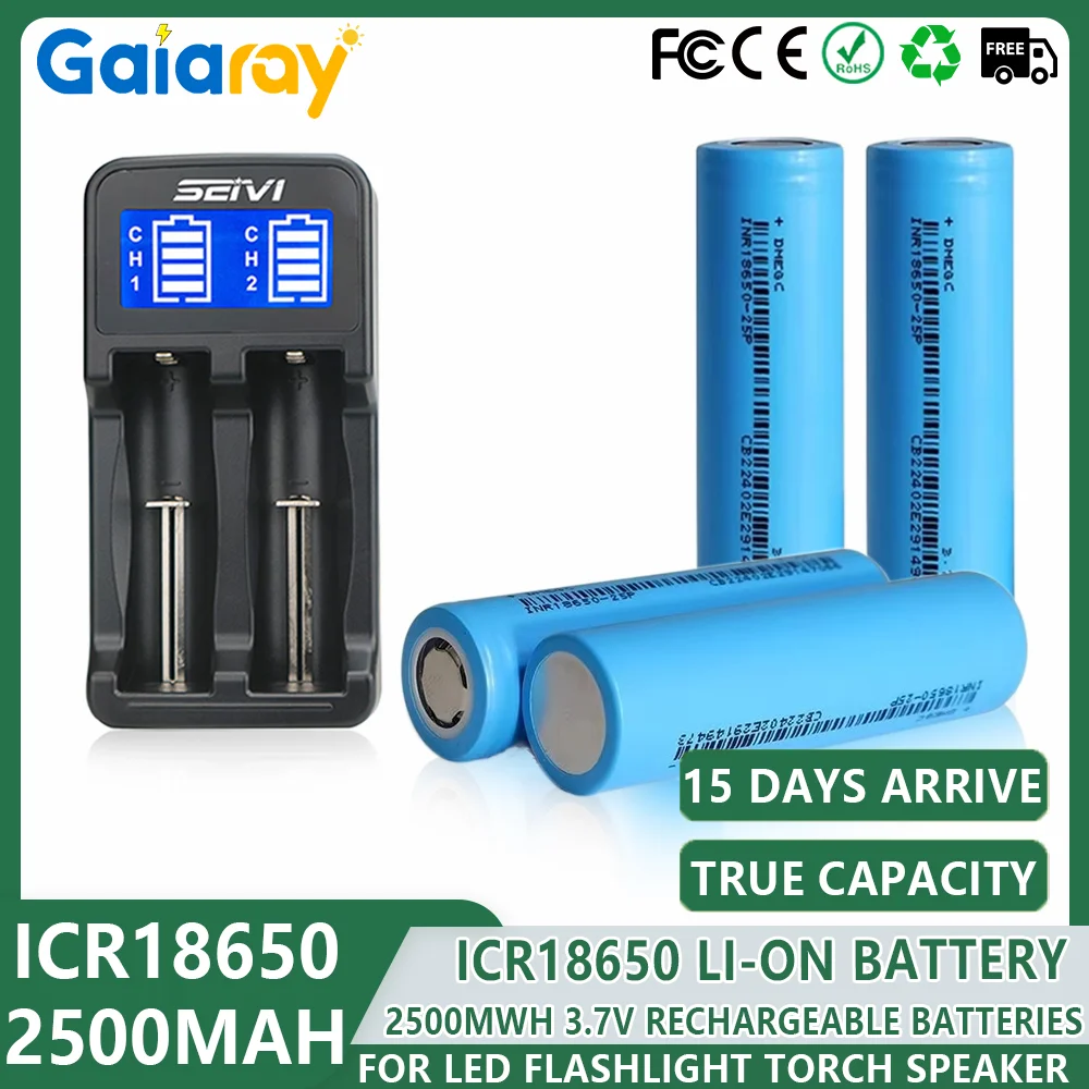 1-10pcs 18650 2500mah 3.7V Rechargeable Li-ion Battery 18650 Lithium Battery 18650 Battery Power Tool Toy Comes + Smart Charger $6.29