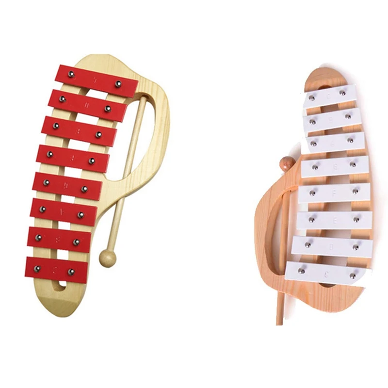 AD10 Hand Knock Xylophone Glockenspiel With Mallets 8 Tones Aluminum Sheet Wooden Musical Instrument Preschool Educational Toy F $14.43