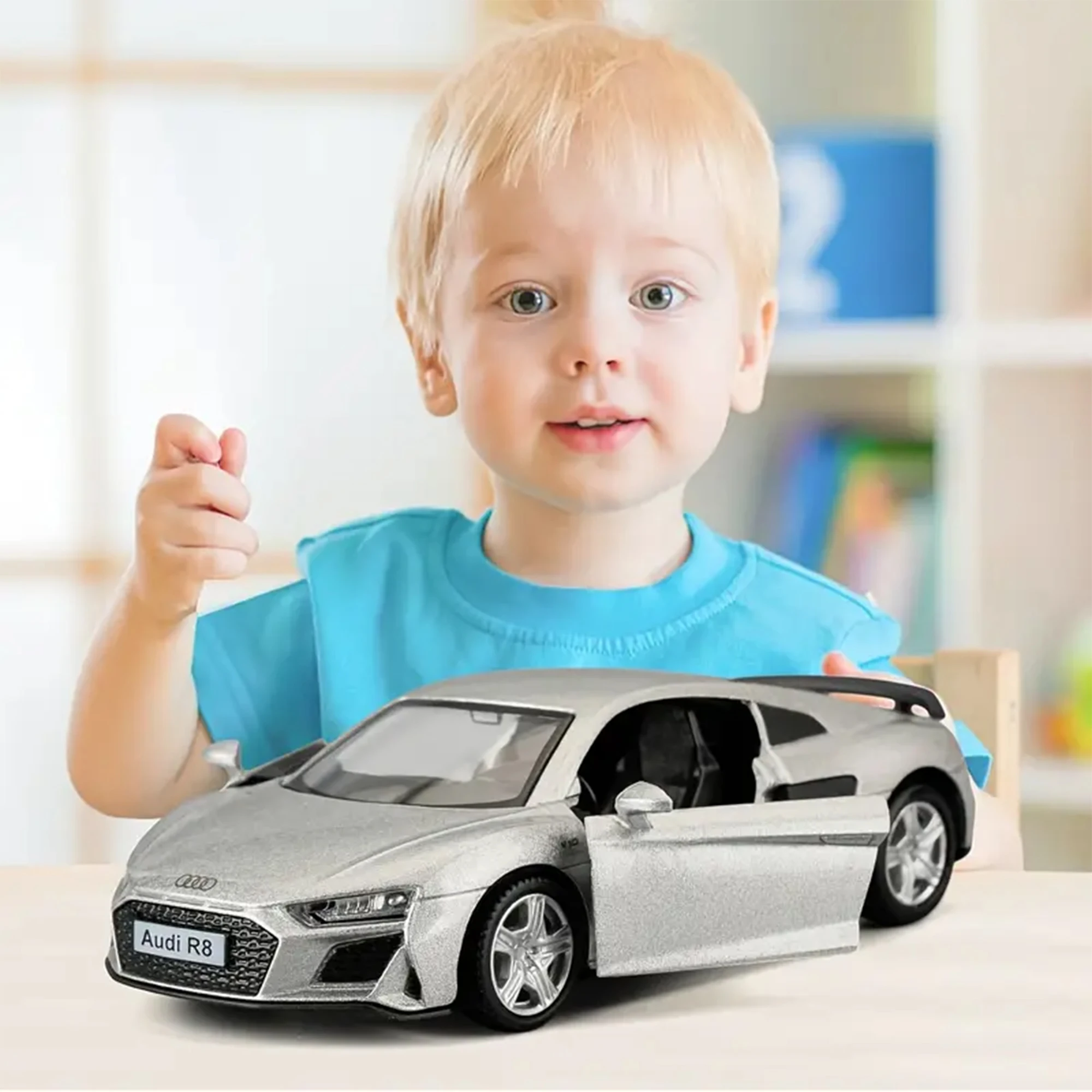 1:36 Scale Audi R8 Alloy Diecast Cars Model Toy Doors Opened Pull Back Vehicles High Simulation Metal Body Boy Children Gifts $9.52