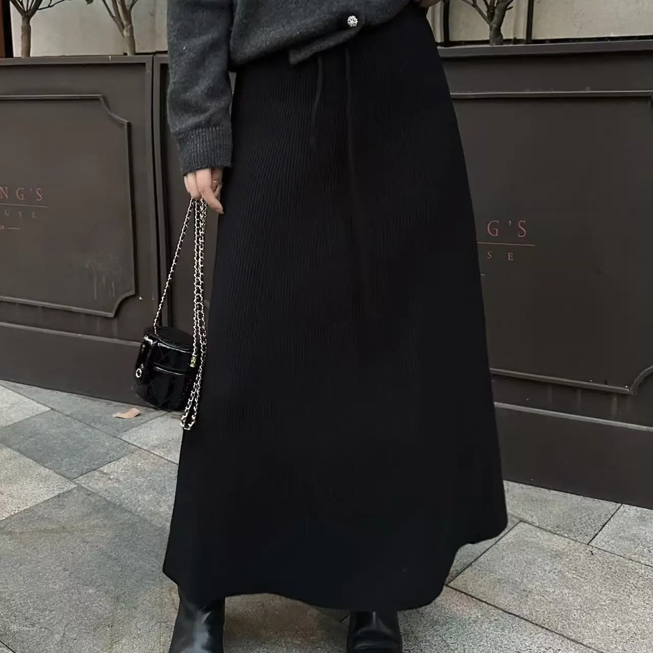 High Waist Knitted A-Line Midi Skirt with Dstring for plus Size Women Simple Sle Casual Polyester Fiber Long Umbrella Skirt $38.40