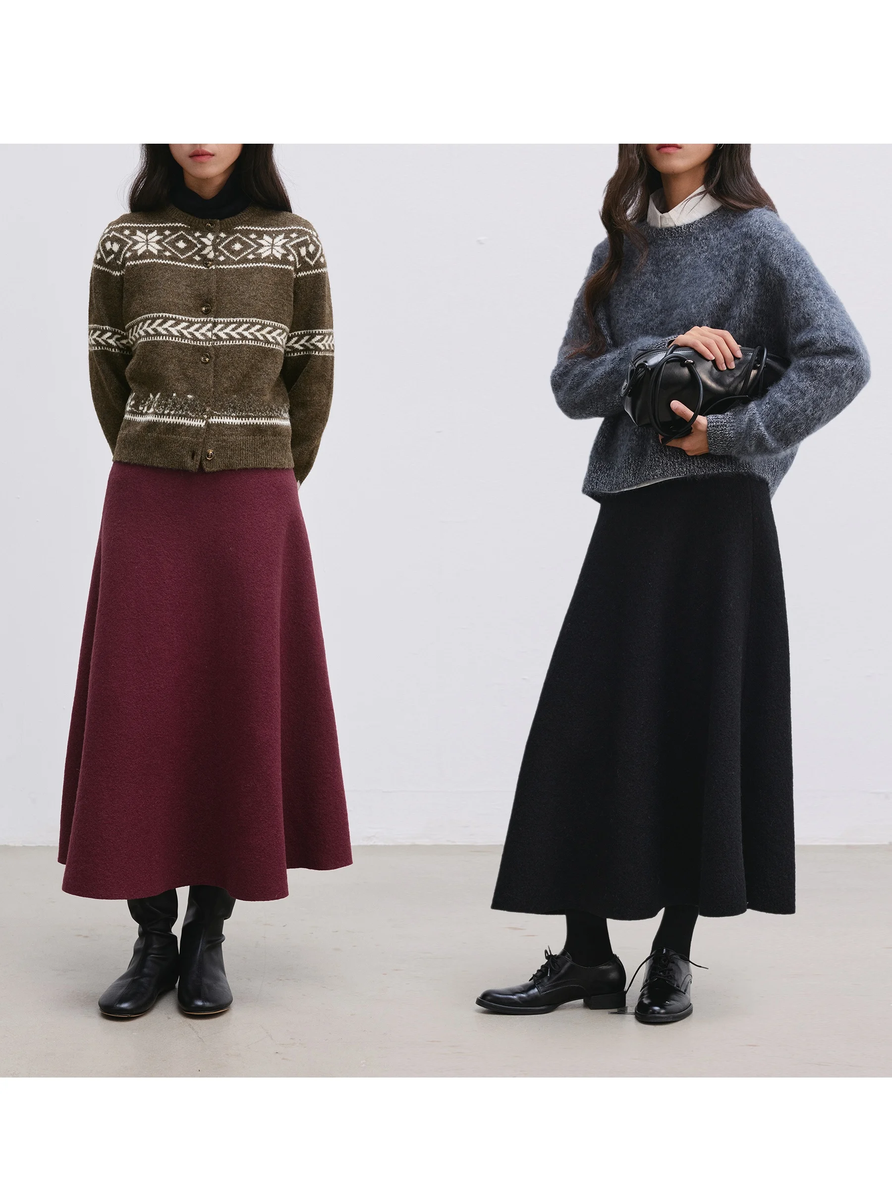 DotDrobe Woolen Skirt Narrow Waist Design Commute Friendly OL Sle Winter Collection Women's f-length Umbrella Skirt $124.44