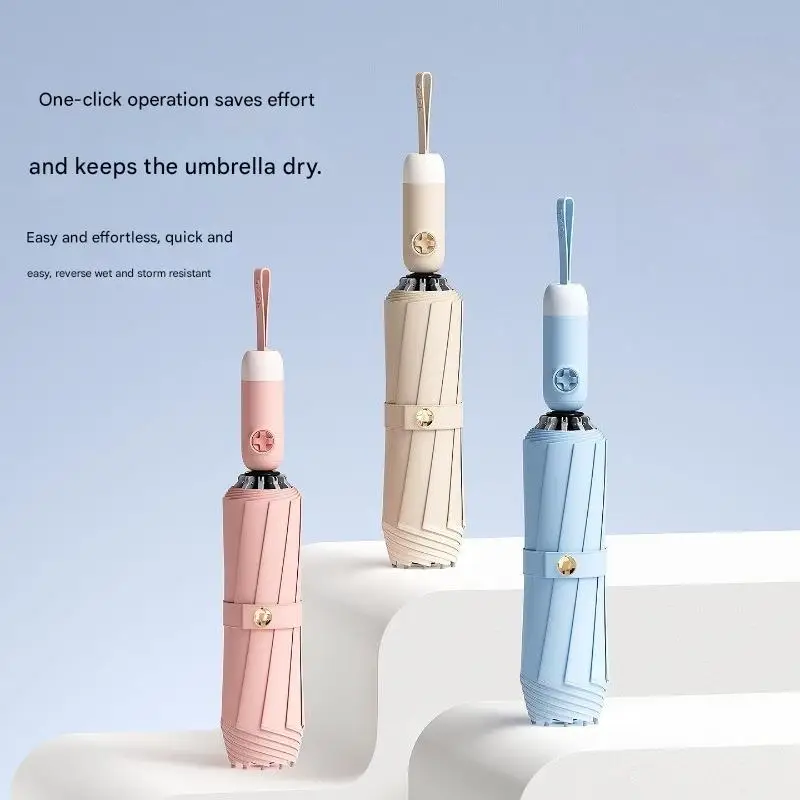 Fully Automatic Reverse Umbrella Large Size Folding Windproof Reinforced Thickened Dual-use Sunny Rainy Day Car-mounted Umbrella $39.34