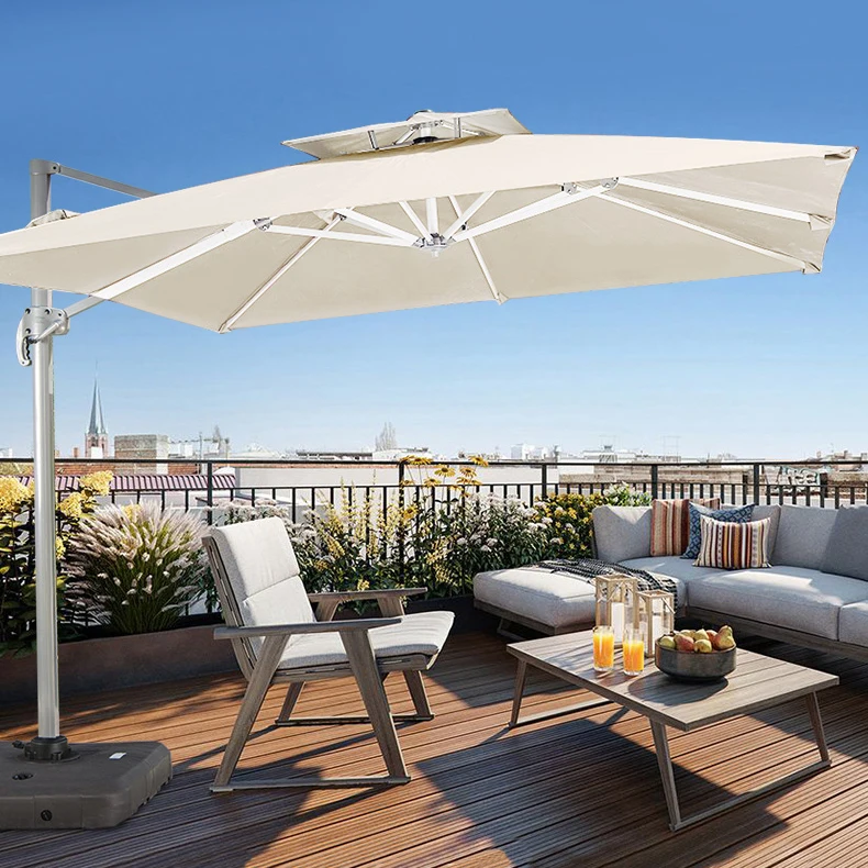 Modern fashion high quality sun waterproof beach courtyard garden outdoor umbrella with outdoor furniture base $329.39