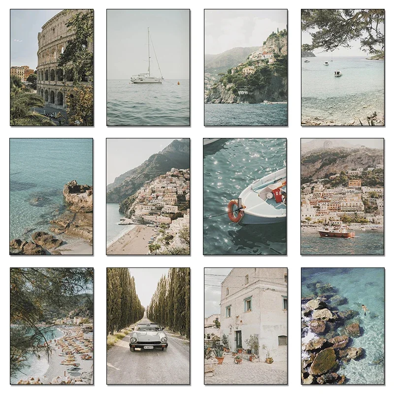 Italian Village Amalfi Coast Photography Poster Rattan Beach Umbrella Boat Positano Canvas Painting Print Living Room Home De $4.01