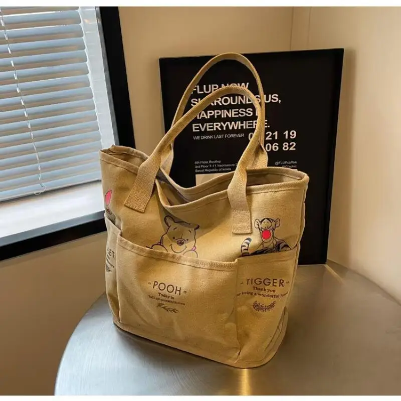 Disney Pooh Bear Cute Cartoon Simple Canvas Zipper Handbag Multi Space Large Capacity Umbrella Mobile Ipad Storage Girl Gifts $2.43