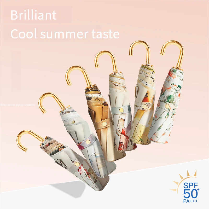French oil painting three-fold small gold hook parasol protection against ultraviolet women's rainy umbrella sun umbrella small $19.35