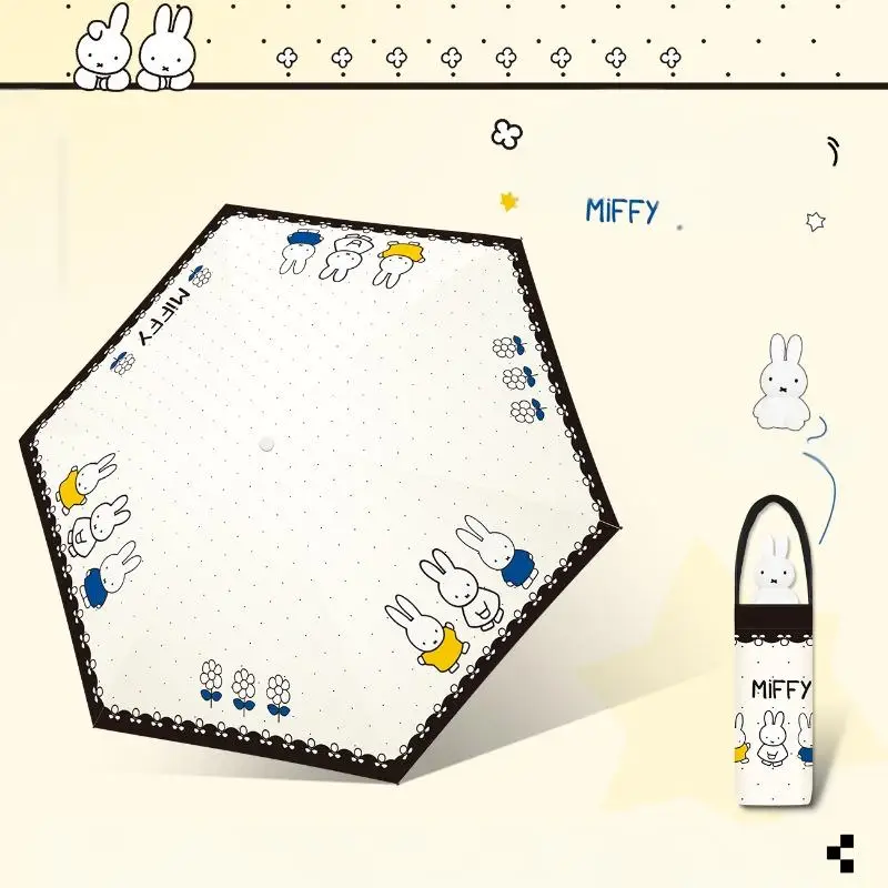 Japanese Cartoon Miffy Rabbit Weather Dual-use Folding Umbrella Kawaii Children's Portable Sun Umbrella Birthday Gift $6.57