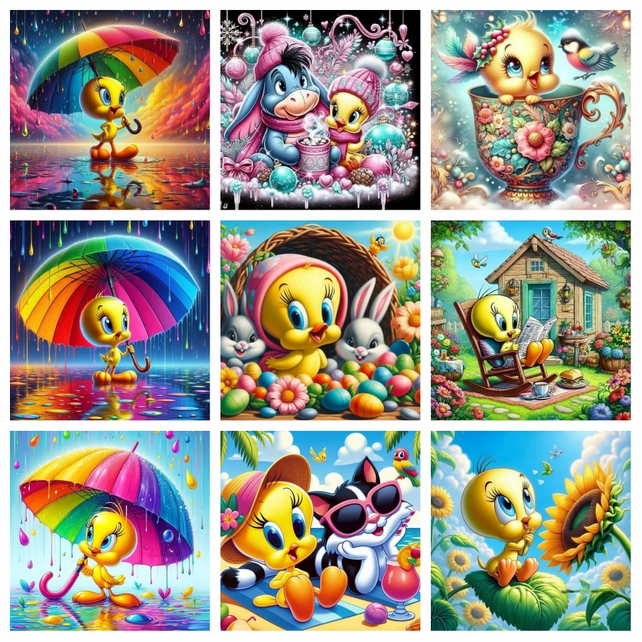 Cute Tweety Bird Under Colorful Umbrella 5d Diamond Painting Art Looney Tunes Cartoon Cross Sttich Diy Mosaic Home Decor Gift $5.42