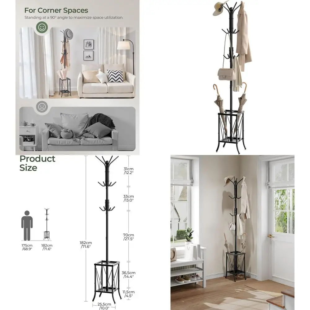 Coat Rack Stand with Umbrella Holder, Coat Tree reestanding with 16 Hooks, Coat Hangers Stand or Living Room, Bedroom, Oice, Bla $49.81