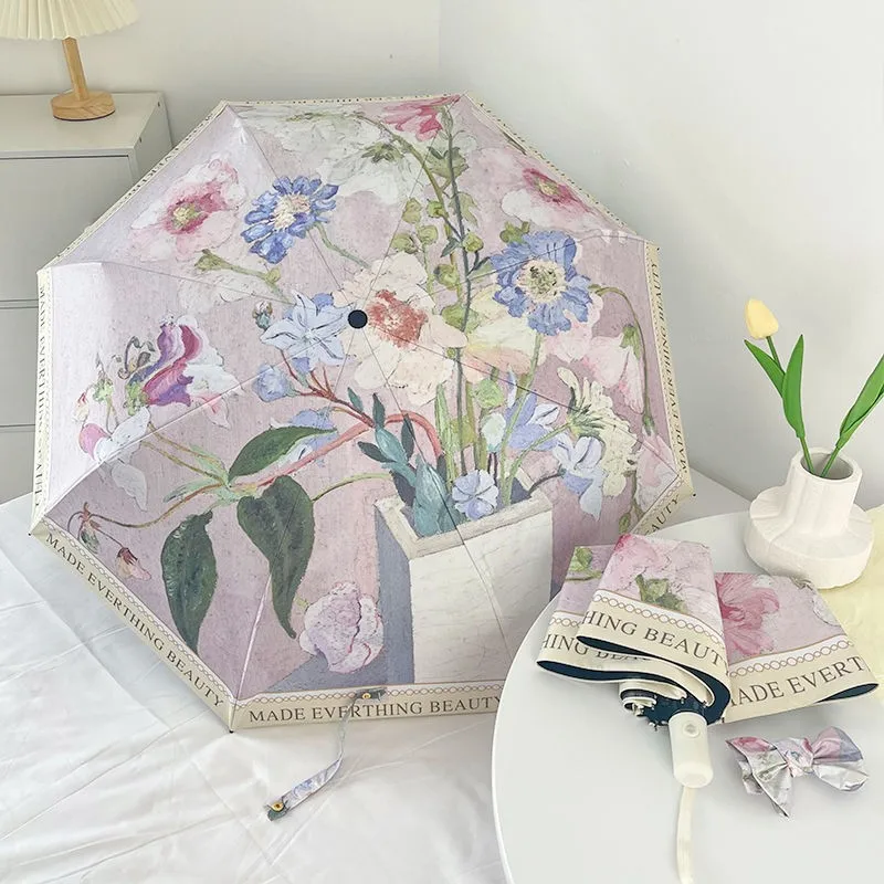 Retro oil painting folding umbrella for women with high appearance, sun and rain dual-purpose sun umbrella sun protection, ultra $14.08