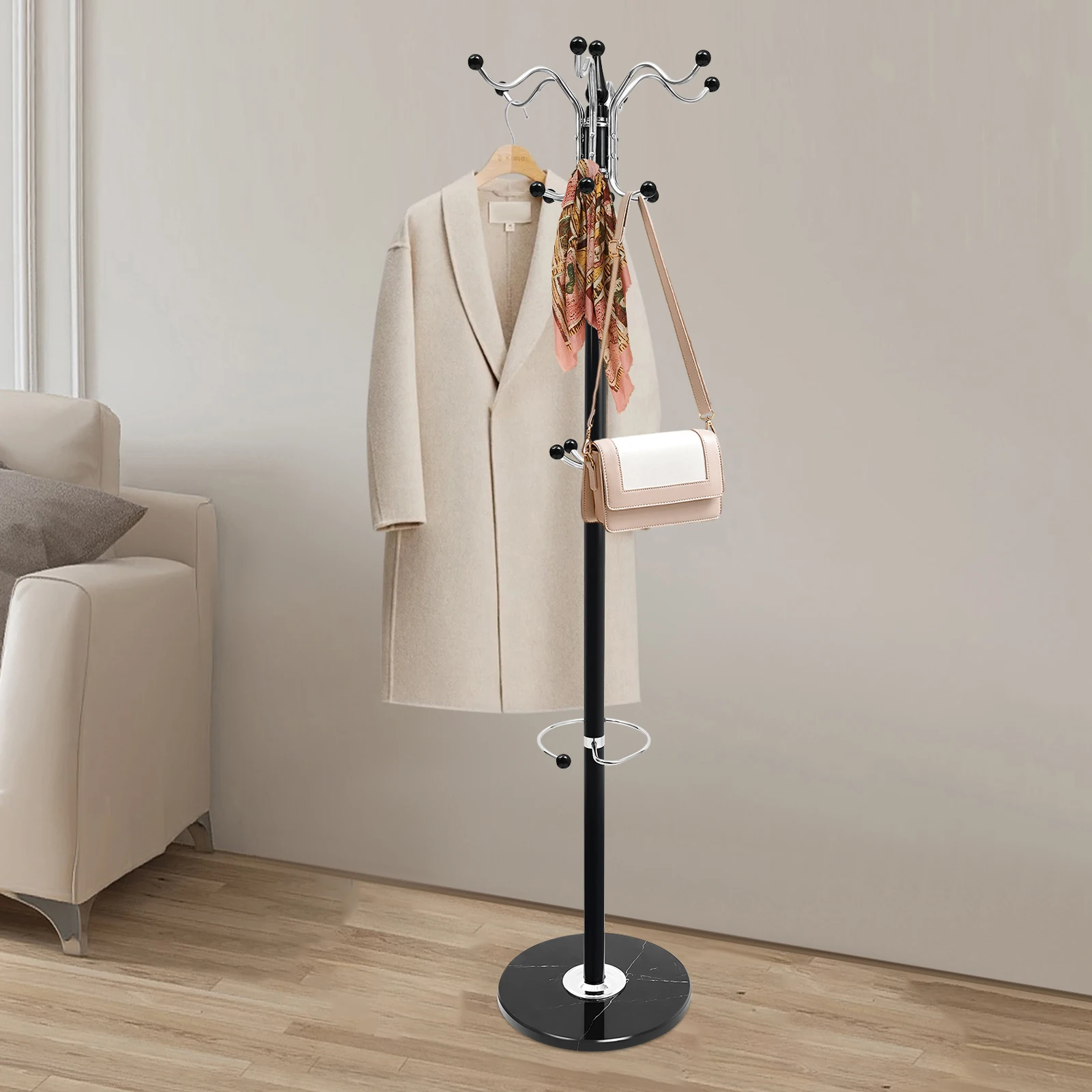 Coat Rack, 16 Hooks 4 Tiers, Vintage Umbrella Clothes Hanger, Overcoat Hat Jacket Stand Rack, Marble Base, Tree Holder $41.02