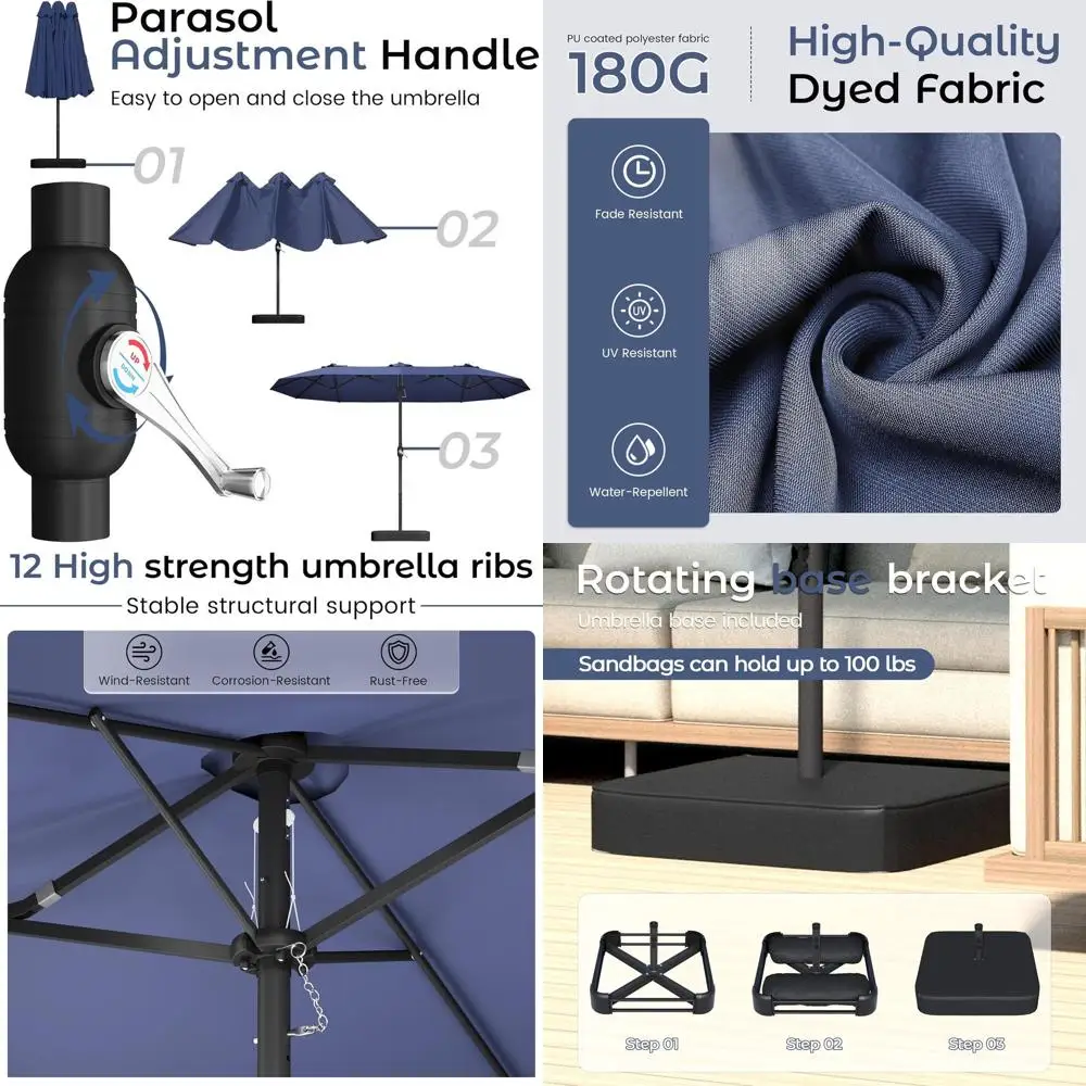 Large Outdoor Double-Sided Rectangle Patio Umbrella with Crank, Blue, for Poolside, Garden, Deck, Backyard, Beach $143.71