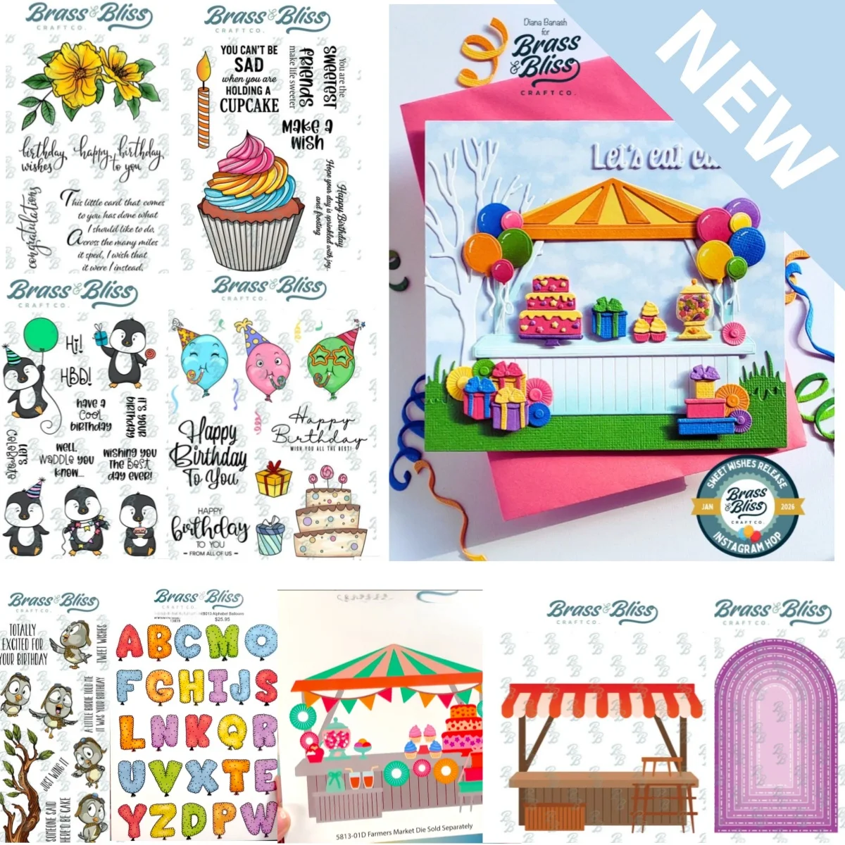 2026 New Birthday Flower Frosted Wishes Farmers Market Flag Banner Metal Cutting Dies Clear Stamps For DIY Decorating Scrapbook $1.79