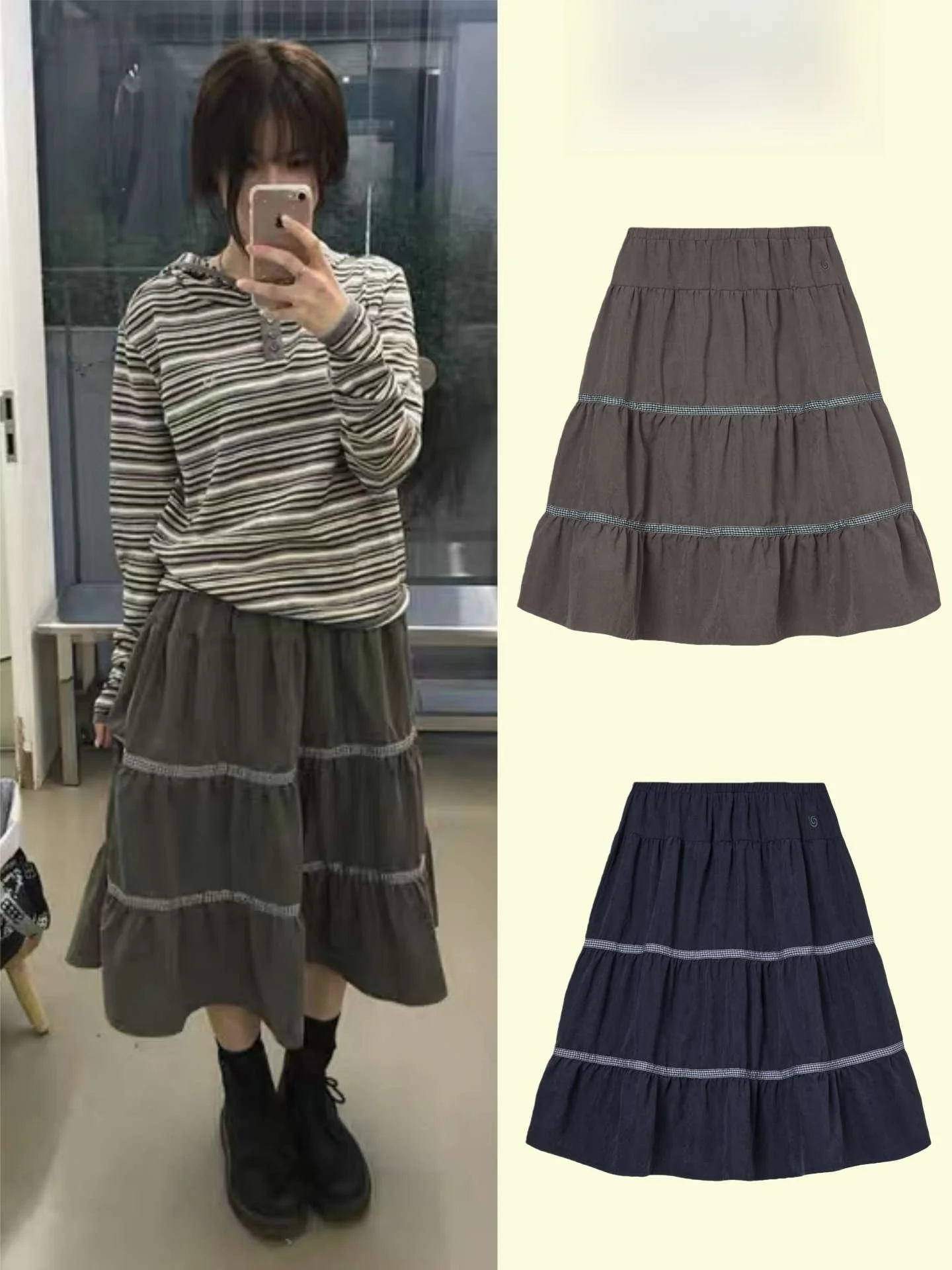 AEAE Japanese Sle Plaid Umbrella Skirt High Waist Casual High Waist Polyester Cotton Spring Autumn New Arrival Cake Skirt $38.73