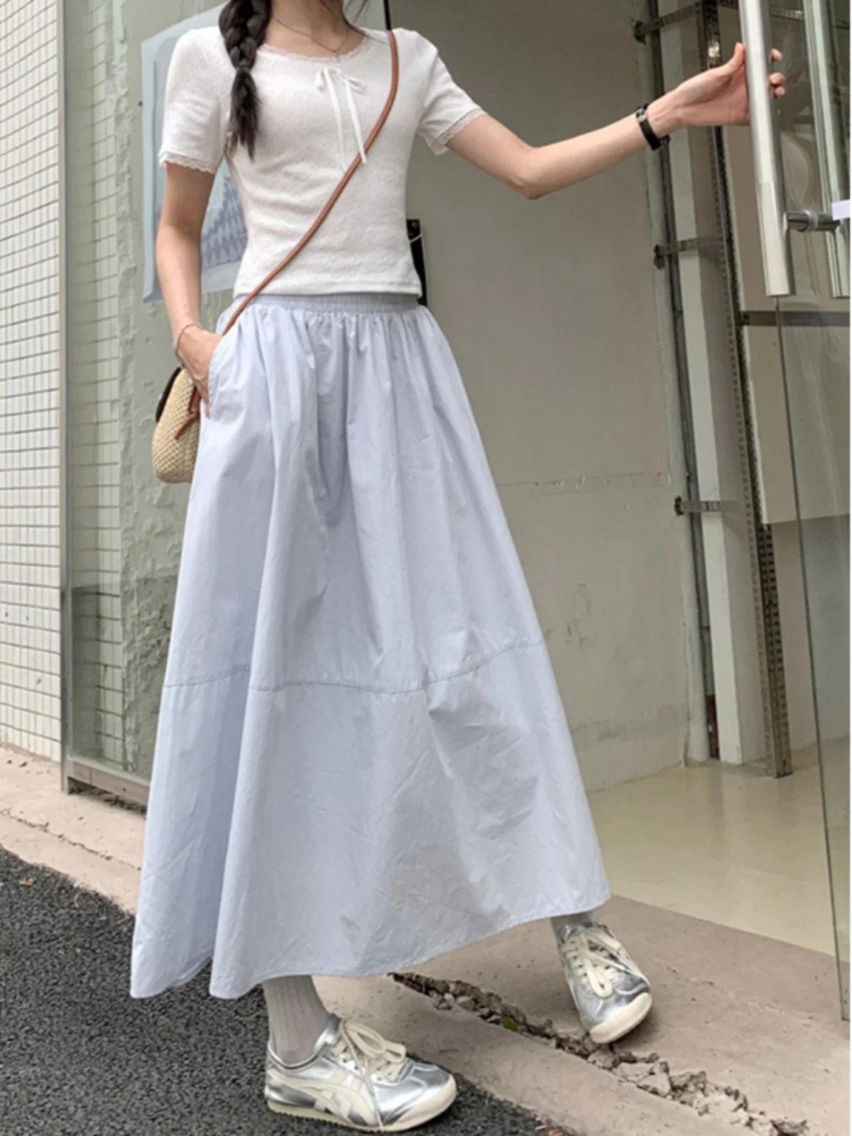 Blue High Waist A-Line Skirt Women's Summer Faion Chic Umbrella Skirt Slimming Korean Sle Midi Skirt Trendy Ins $8.84