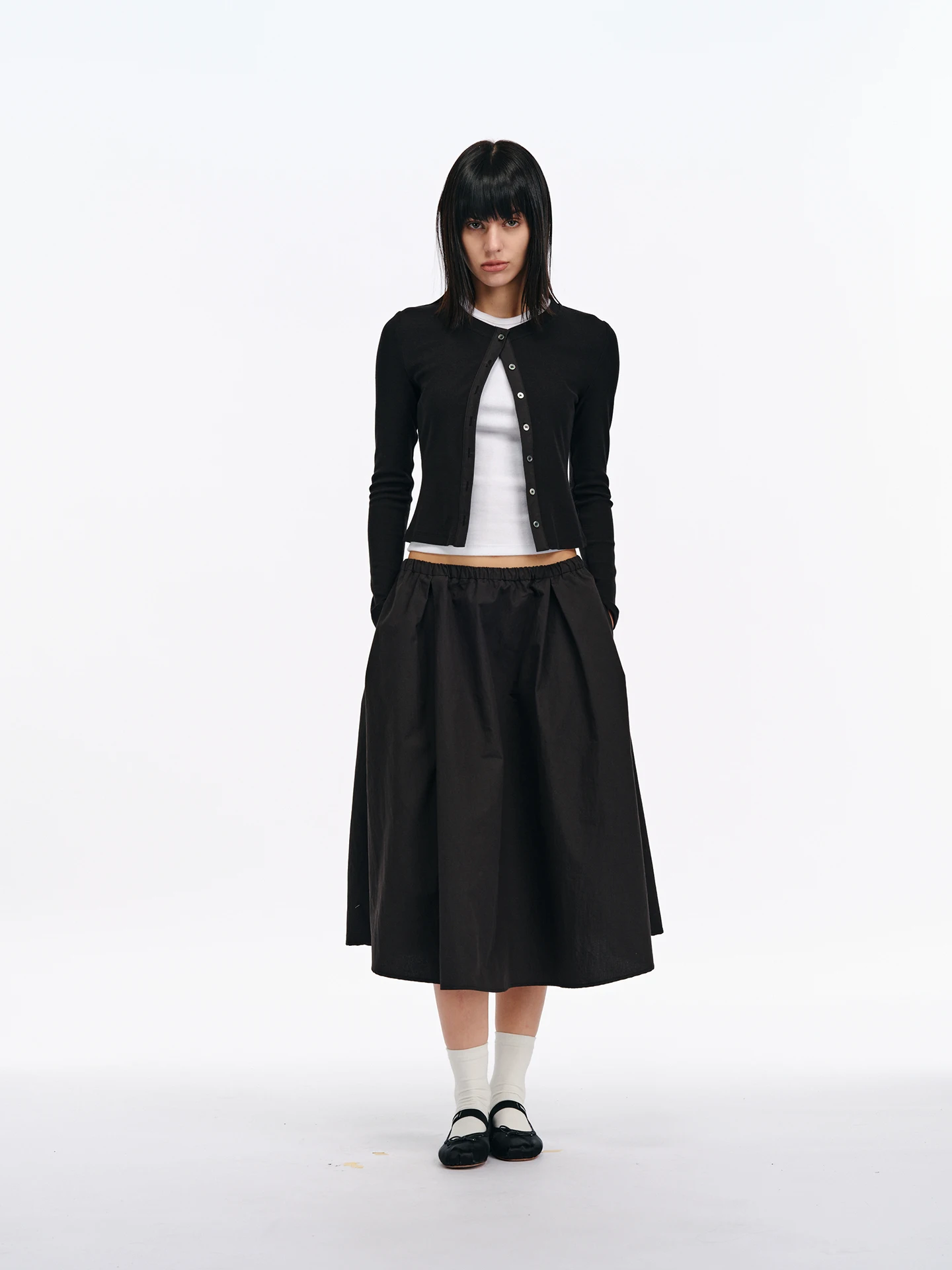 Organza Skirt Puffy Skirt Summer Style Slim Mid-length Mesh Hollow Embroidered Pure Black Pleated Umbrella Skirt $28.45