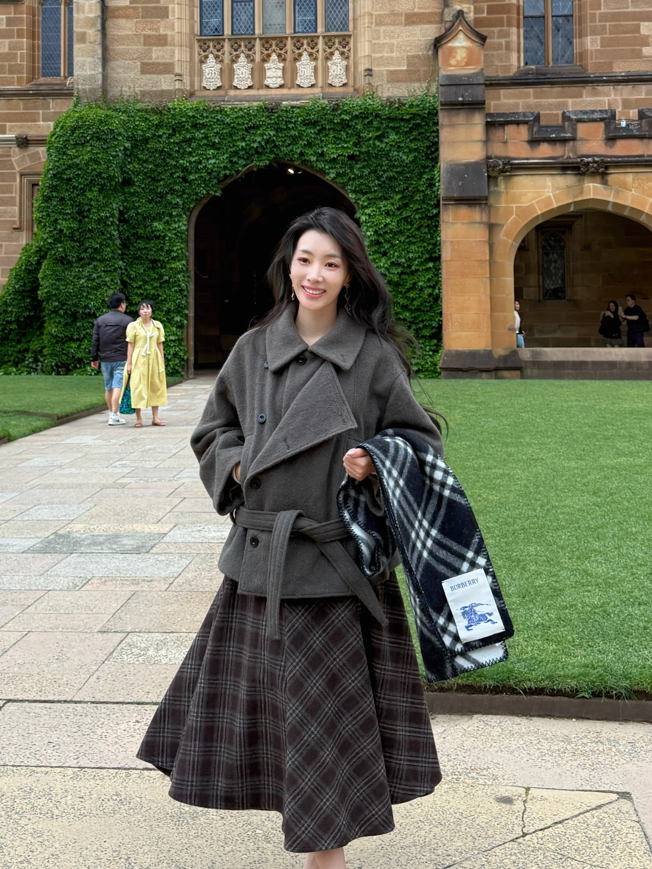 Thiened Woolen Plaid Skirt High Waist A-Line Skirt Wide Hem Umbrella Skirt Autumn Winter Vintage Sle Women's Faion $62.53