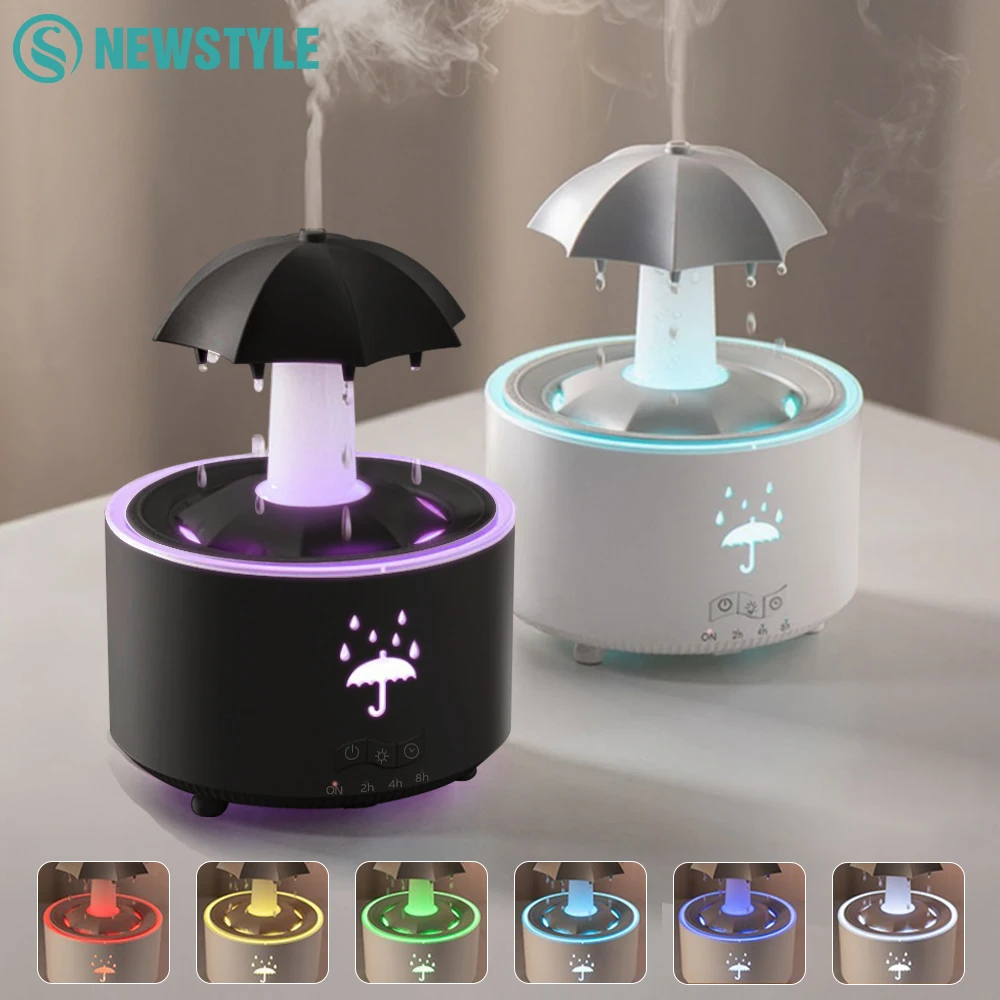 Rotating Umbrella Rain Drops 7 Colors Breathing LED Light Desktop Decor with Air Humidifier Quiet Aroma Essential Oils Diffusers $30.09