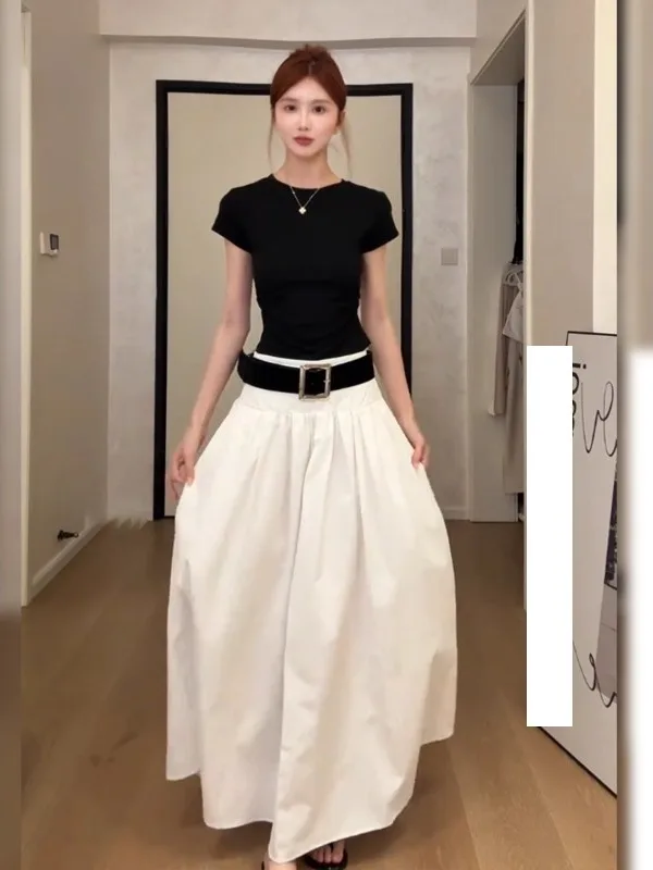 High Waist Slim Fit White Lazy Umbrella Skirt Women's Faionable Commute Korean Sle Pleated A-Line Skirt $12.02