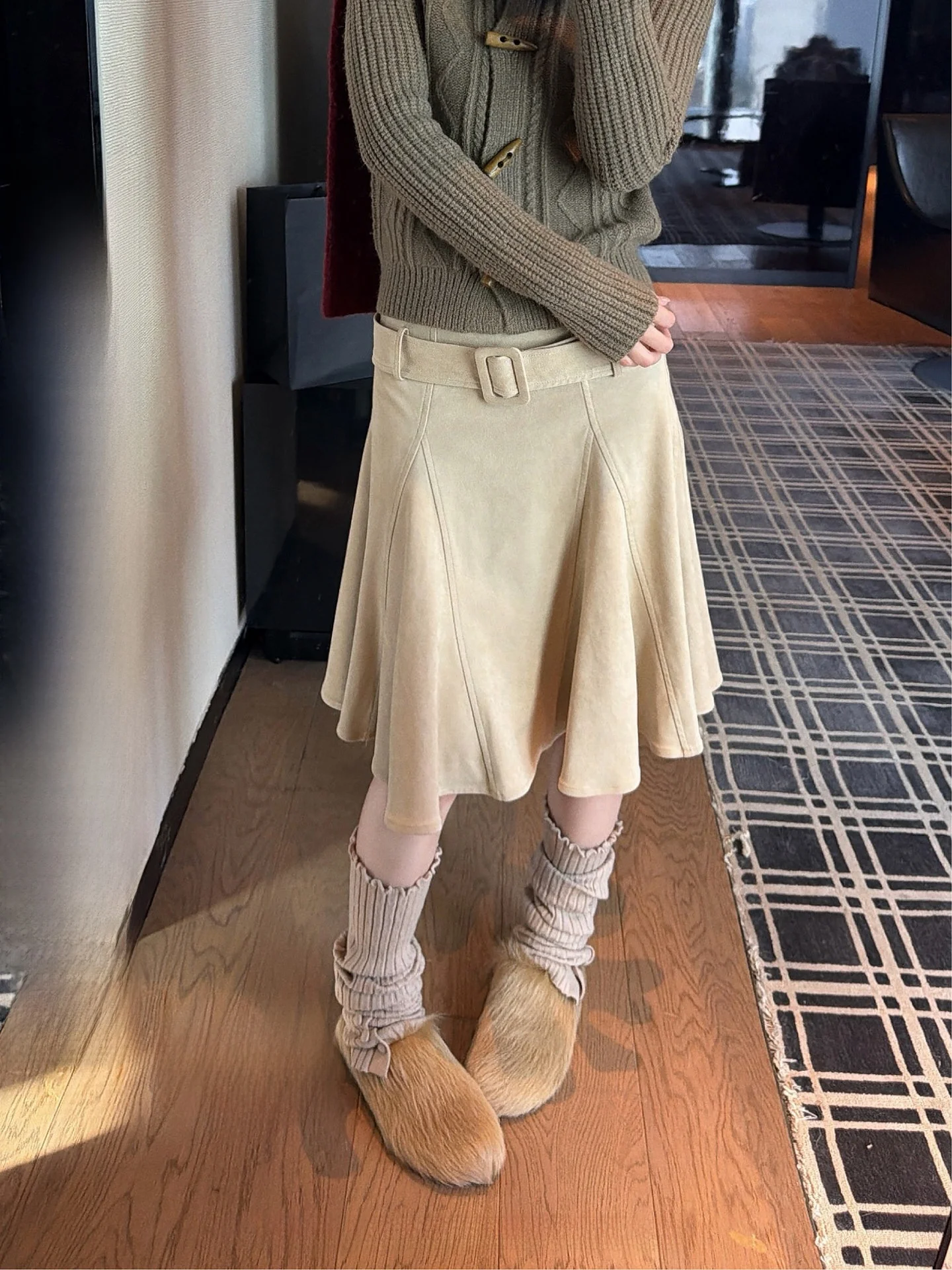 Women's High Waist Long Sheepskin Skirt Umbrella Skirt Short Front Long Back for Spring And Autumn $164.15