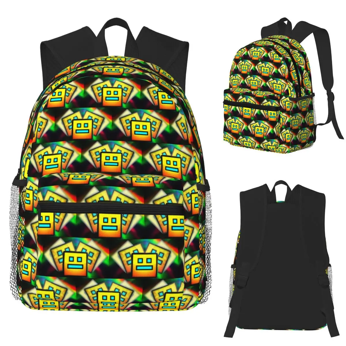 Video Game Geometry Dash Student Backpack School Bag Hiking Travel Daypack for Boys Girls Bookbag Shoulder Bags $10.38