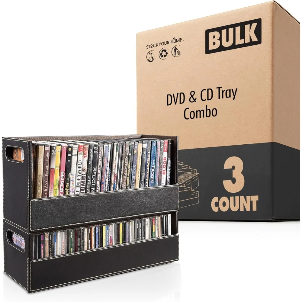 DVD CD Storage Box Organizer Media Shelf for Blu ray Video Games VHS Tapes Faux Leather Display Rack Holds 28 DVDs 40 CDs Set $82.99