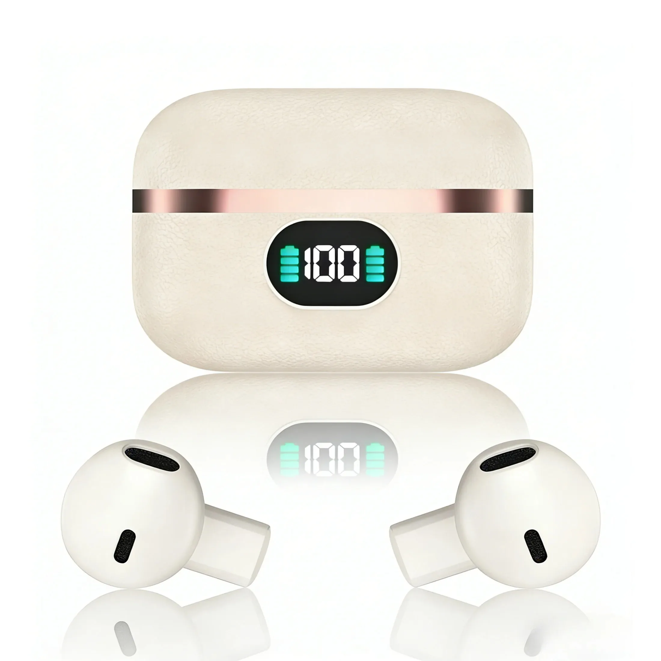 Semi-in-ear Design Earphones Premium Leather Wireless Earbuds Endurance Battery Mic Ideal Companion for Active Music Player $3.72