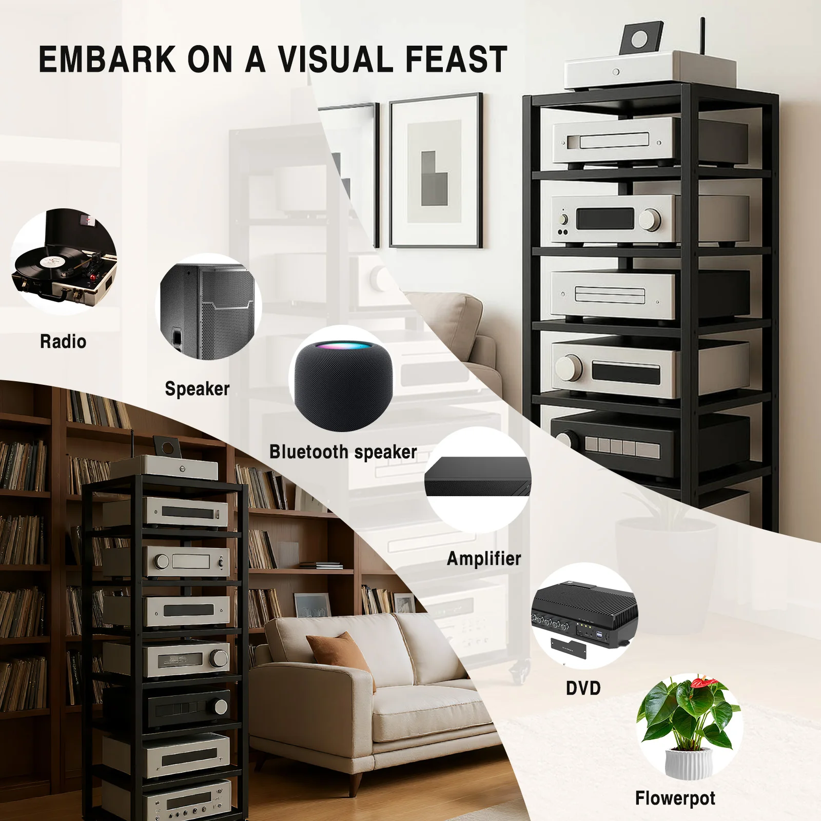 Audio Component Rack with Wheel CD Rack Adjustable Media Console Cabinet Shelf for CD Record Player Stereo Receiver AV Equipment $133.51