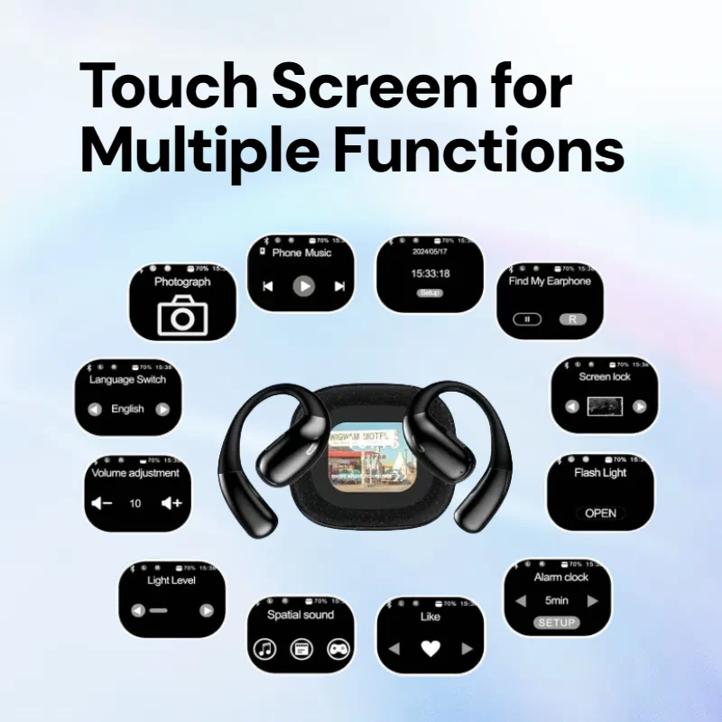 Open-Ear Earphones True Wireless Bluetooth 6.0 Ear Hooks Headphones IPX5 Waterproof Sports Earbuds LED touch with charging box $23.53