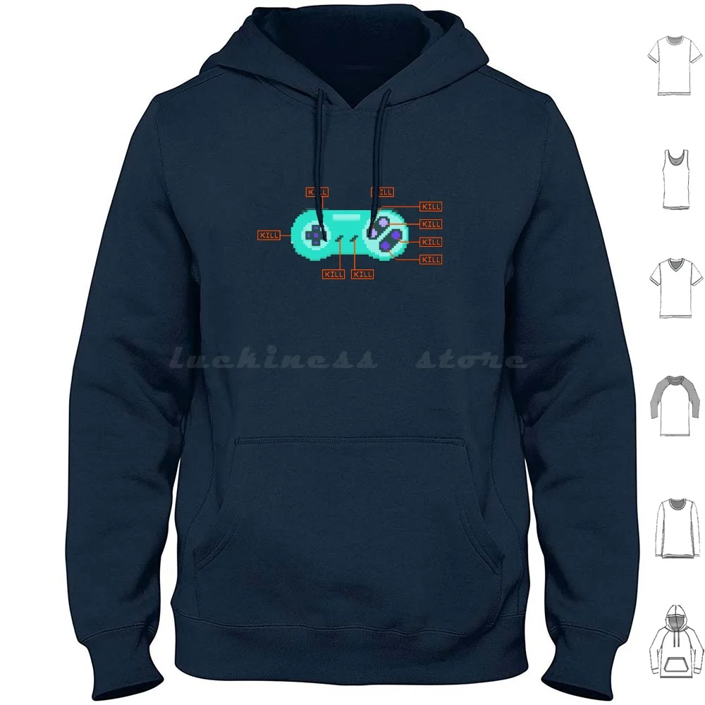 Button Mash Hoodie Cotton Long Sleeve Mash Mash Joystick Controller Videogame Video Game Nes Snes Kill Instructions $14.43