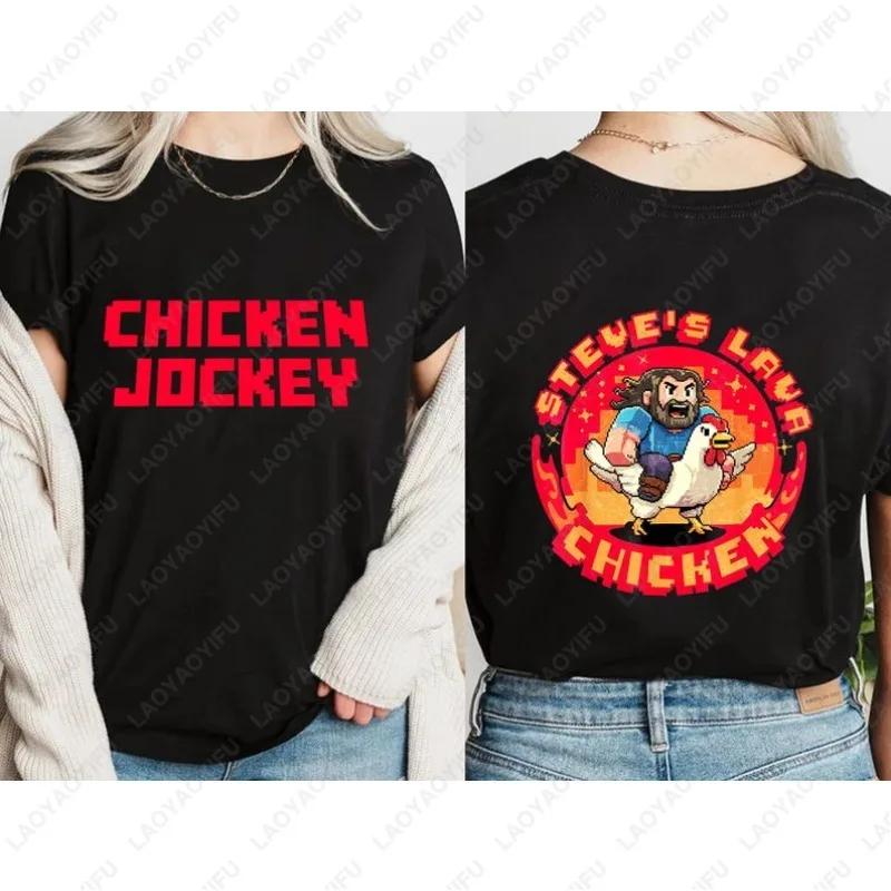 Angry Chicken Jockey Black Shirt Funny Farm Animal Tees Gift for Videogames Fans Steves Game Shirt Novelty Pixel Style Male Tops $4.84