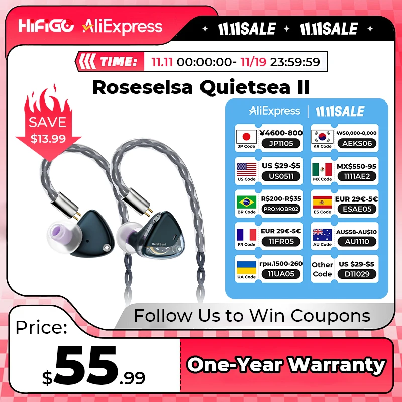 ROSESELSA QuietSea 2 / QuietSea II 10mm Dynamic Driver In-ear HiFi Earphone with 3.5mm+4.4mm Interchangeable plugs $55.99