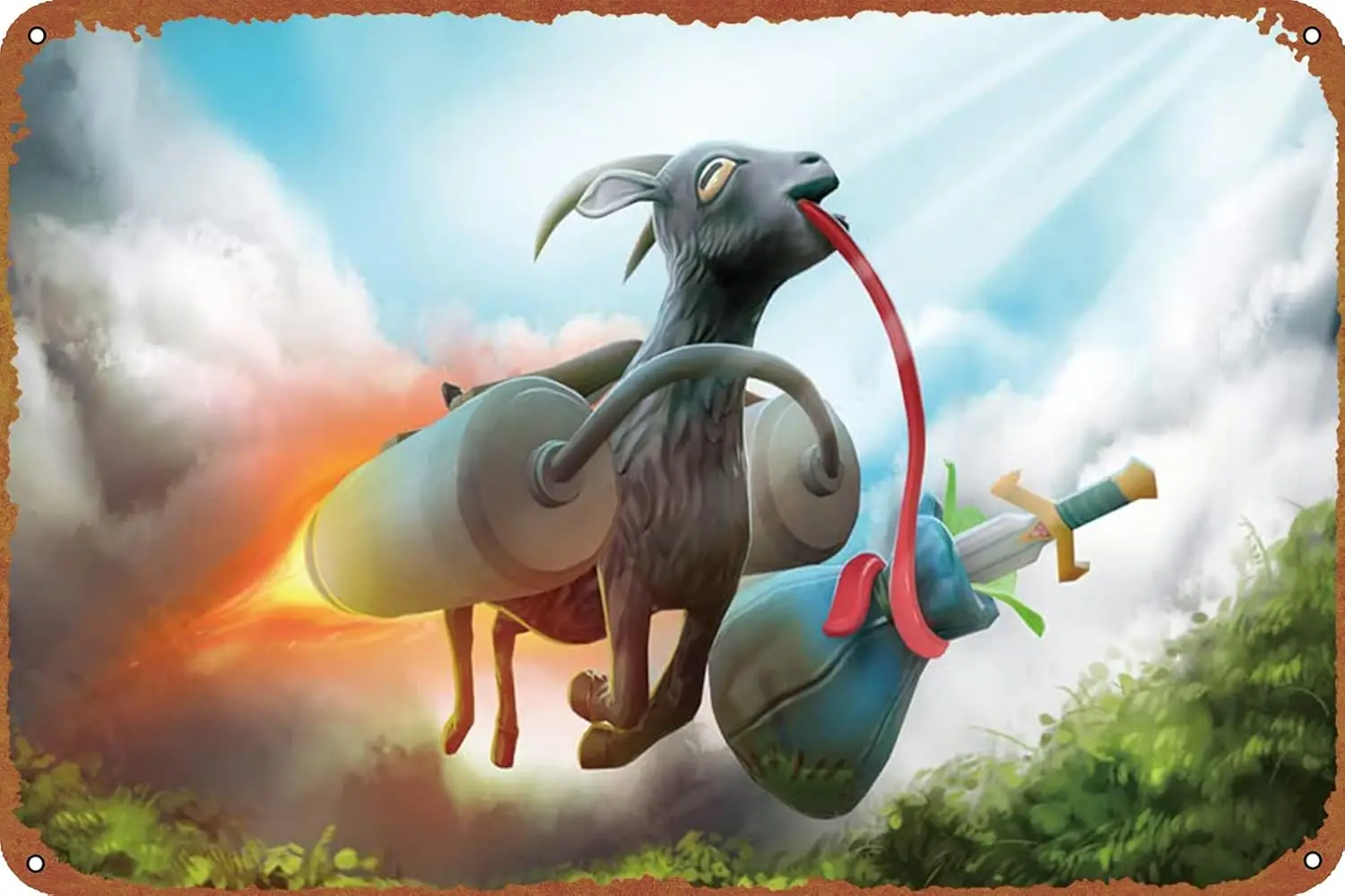 Video Game, Goat Simulator Poster Tin Sign Vintage Metal Sign Retro Style Bar Pub Man Cave Wall Plaque Decoration Gifts $5.51