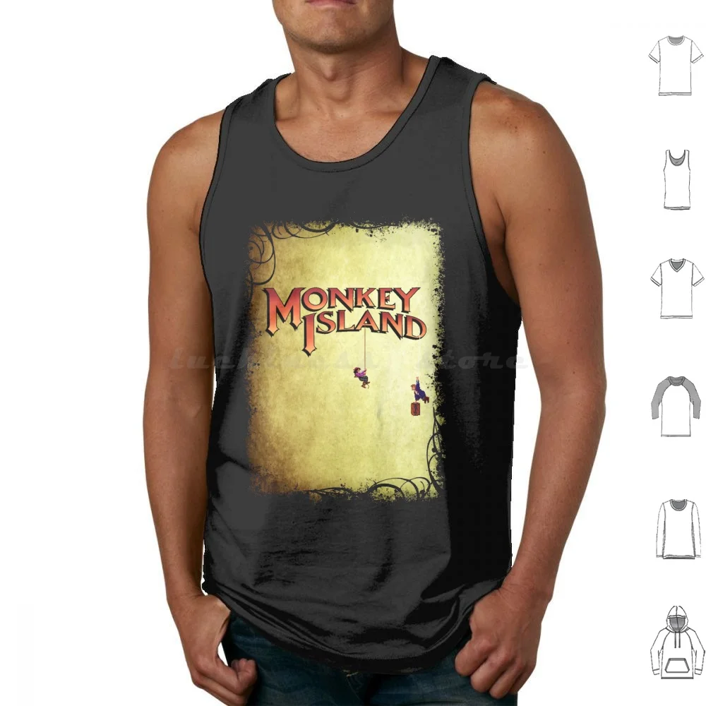Monkey Island Tank Tops Print Cotton Monkey Island Lucas Games Videogames Lechuck Revenge Isola Tesoro Treasure Pirate $13.12