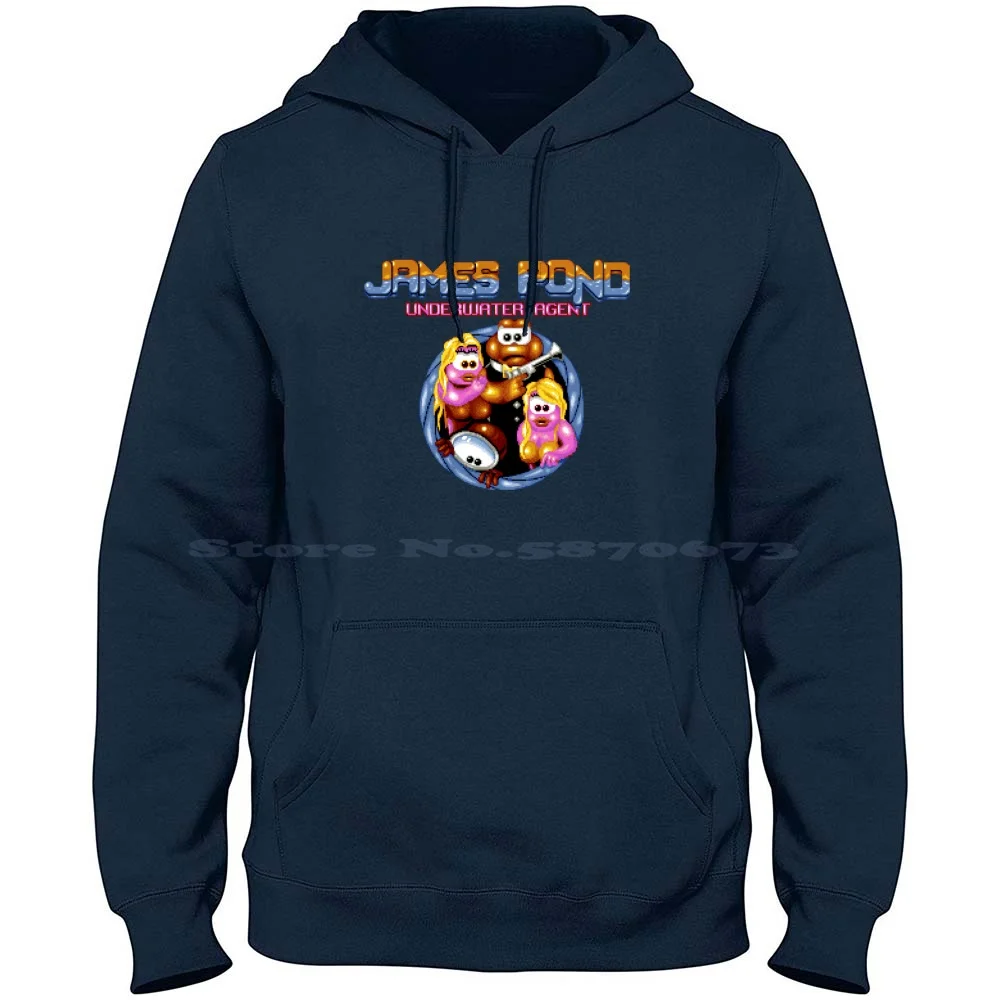 James Pond-Title Screen 100% Pure Cotton Hoodie Tshirt James Pond Bond 007 Platformer Mascot Fish Animal Snes Videogame Sprite $9.36