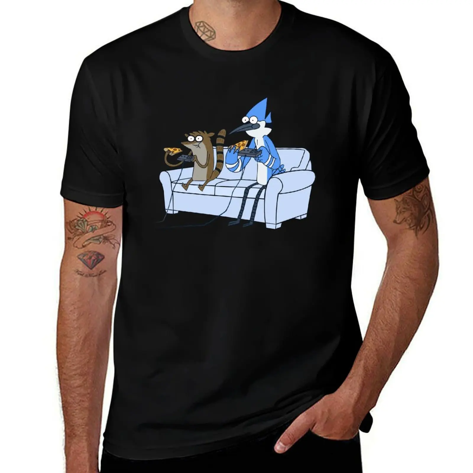 Mordecai and Rigby Pizza and Video Games T-Shirt cotton t shirt man man t shirts cotton t shirts for man graphic tees T-Shirt $11.59