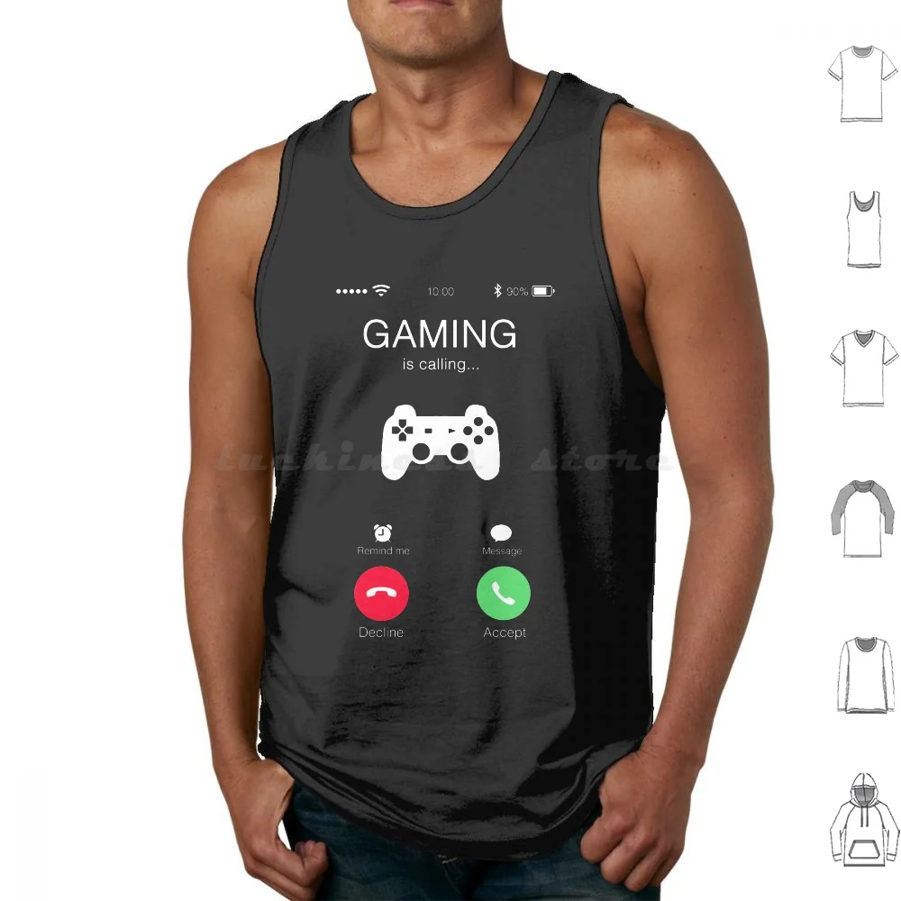 Gaming Is Calling Me Tank Tops Print Cotton Gaming Game Games Videogame Videogamer Videogames Joystick Play Ps Ps4 Ps5 $12.85