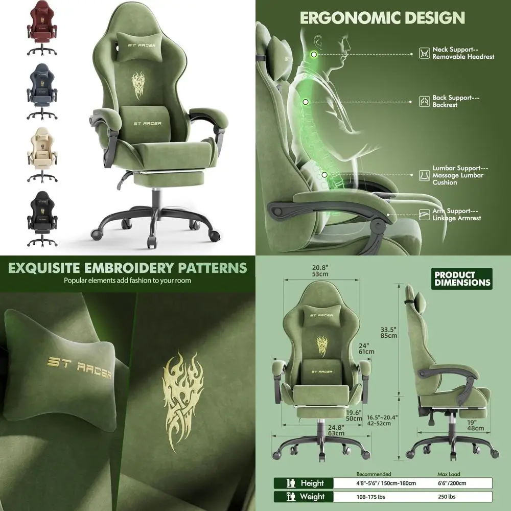 Ergonomic Adult Gaming Chair with Massage Lumbar, Footrest, and Spring Cushion - Green Home Office/Video Game Chair $110.11