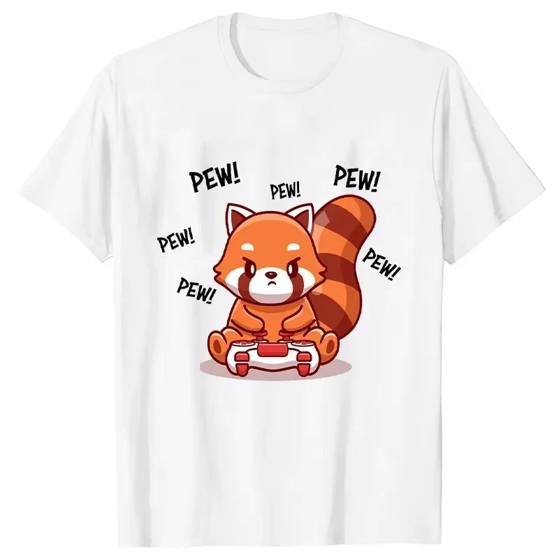 Short Sleeve Tee Red Panda Playing Video Games Funny Women Top Fashion Casual Clothes 2000s Aesthetic Tshirts Anime Y2k T-Shirt $9.06