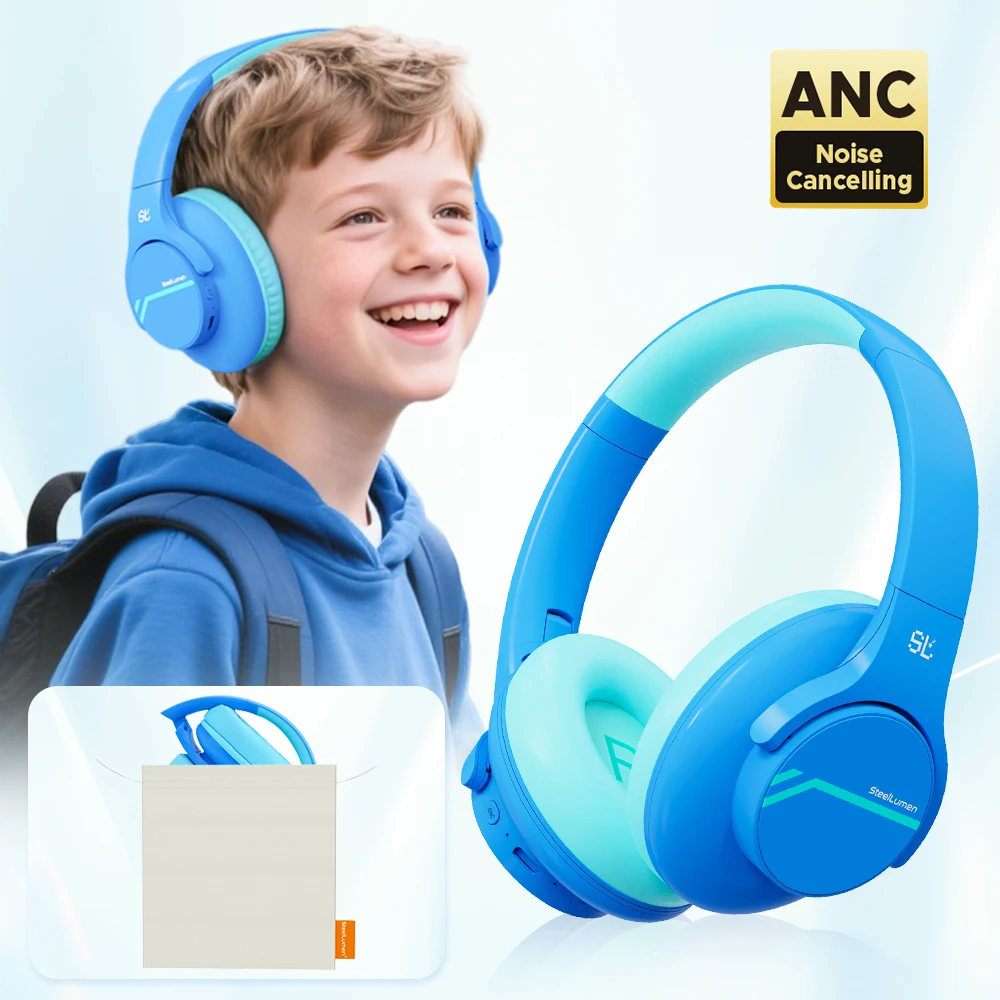 ANC Wireless Bluetooth Headphones for Kids Age 6-18 Hearing Protection Over Ear Headset with Mic for Airplan/Travel/School $21.20