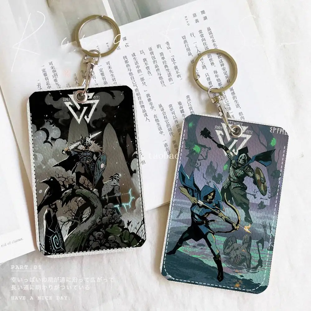 1pc Retro Video Game V-Valheim Rectangle ID Card Case Keychain Access Card Bag Key Tag Ring Leather Card Holder Key Ring Access $8.39