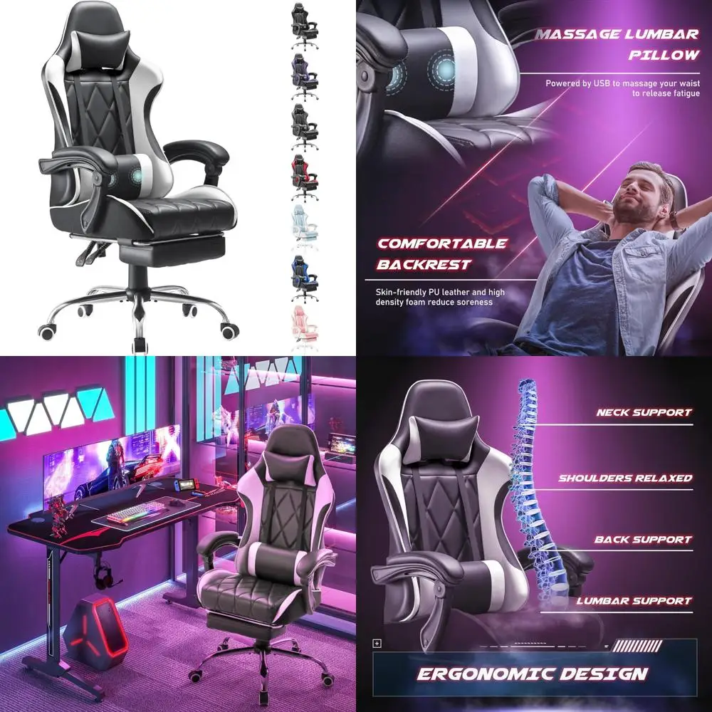 Ergonomic Video Game Chair with Massage Lumbar Support, Adjustable Footrest and Headrest for Comfortable Gaming Experience $91.03