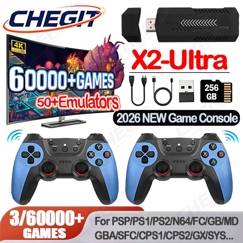 X2 UItra New 4K Retro Game Stick 3/60000+ Games 32/256GB Wireless Control Classic Video Game Console for PSP/N64/GBA Day Gift $22.49